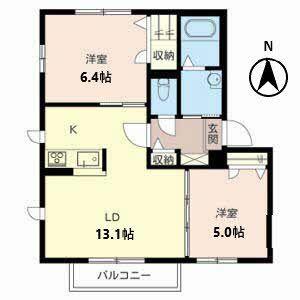2LDK(LDK13.1帖 洋室6.4帖 洋室5.0帖) |